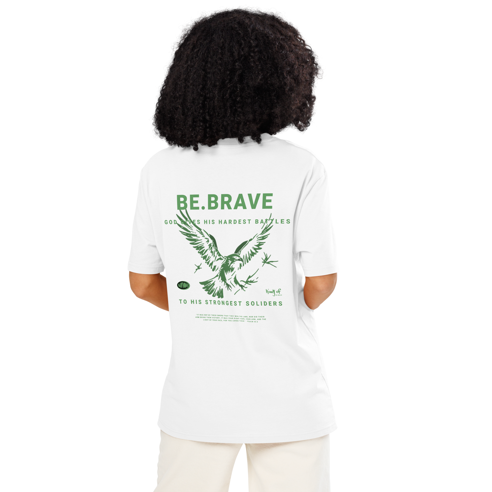 A bold faith-inspired tee featuring a green “HOPE” dove graphic on the front and a powerful “BE. BRAVE” message with an eagle on the back. Designed to represent strength, courage, and resilience—perfect for everyday streetwear with meaning.