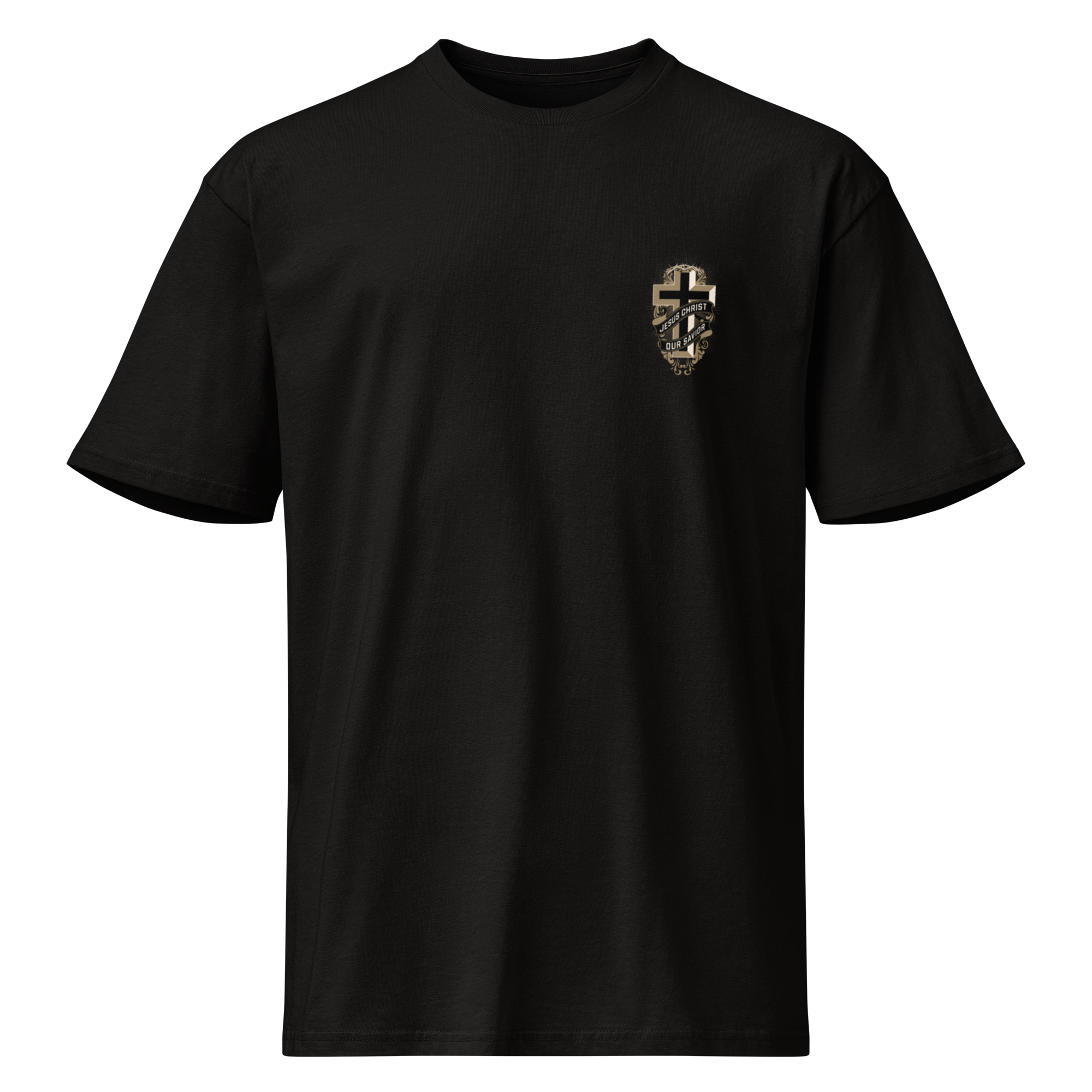 Make a bold statement with this premium black tee inspired by 2 Corinthians 5:7. The back graphic symbolizes walking by faith through the unknown, while the subtle front crest keeps the look clean and elevated.